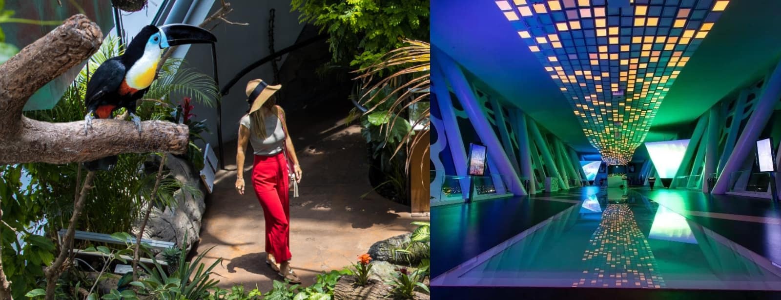 Explore the world’s largest nature paradise at The Green Planet, Dubai, exploring an indoor tropical forest teeming with over 3000 species of animals, birds, and plants.
