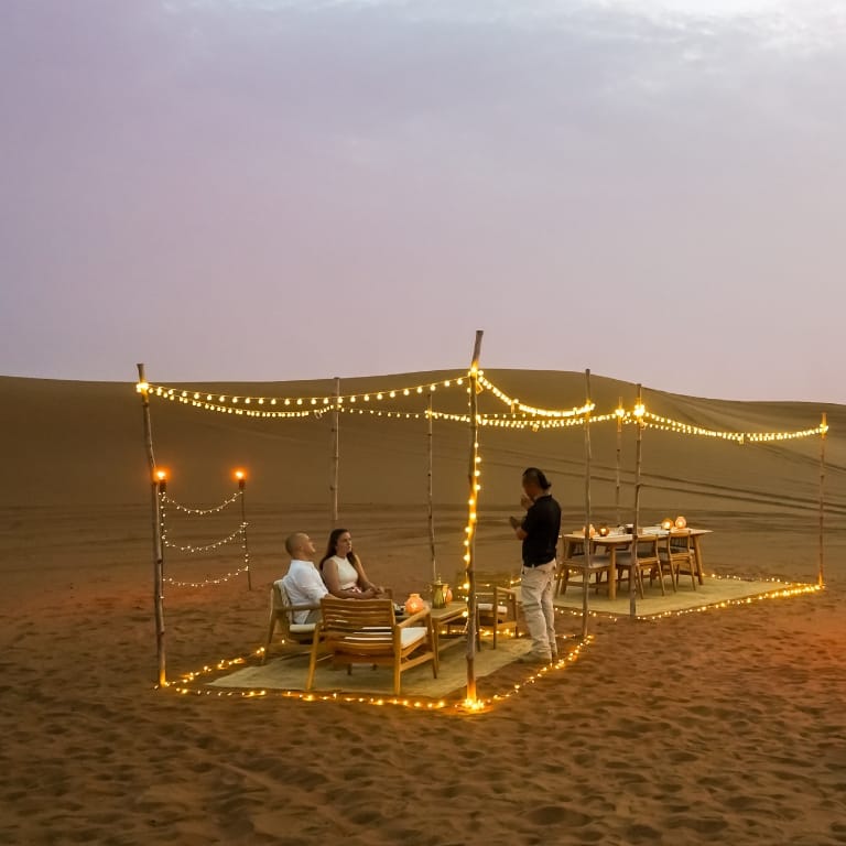 Savor rich flavors under twinkling stars, the perfect end to an adventurous desert day.
