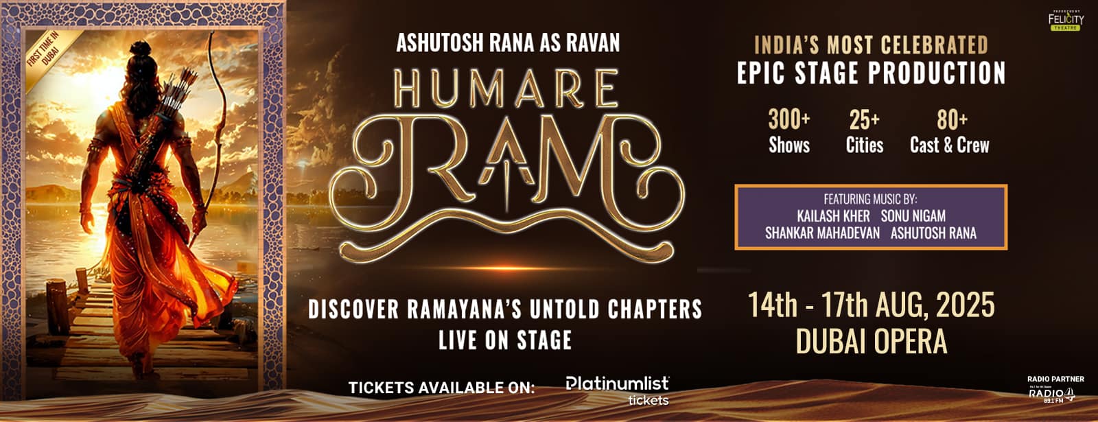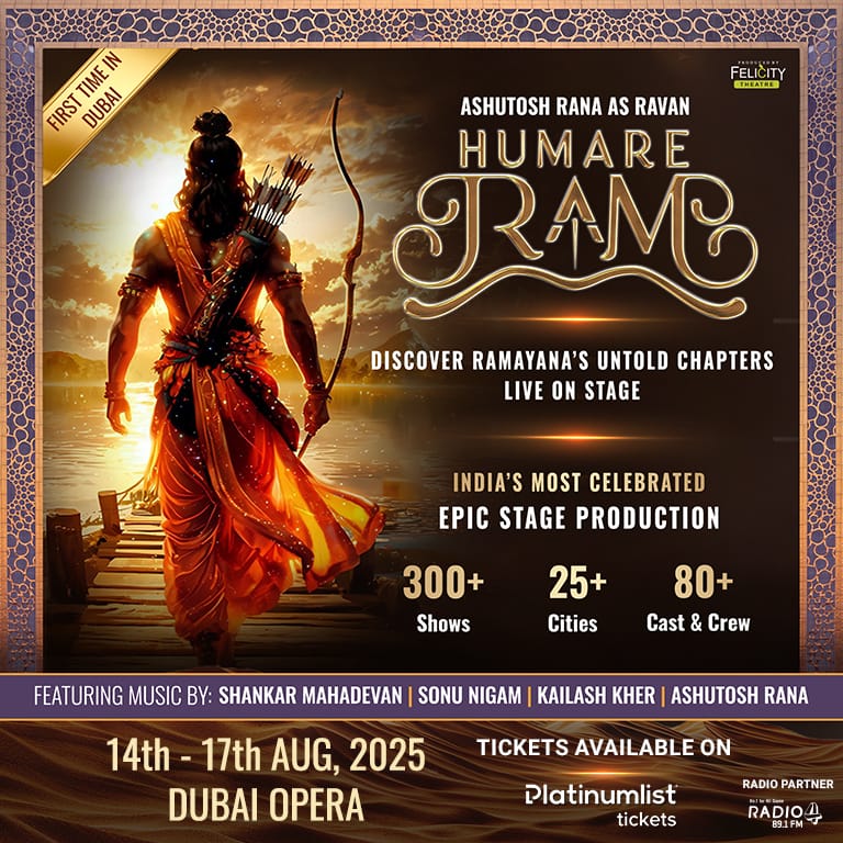– Humare Ram is one of India’s most celebrated and visually spectacular theatrical productions — a contemporary retelling of the Ramayana that blends tradition with modern storytelling. After enthralling over 500,000+ audience members across 300+ shows in 25 cities, the production now makes its international debut at Dubai Opera.
