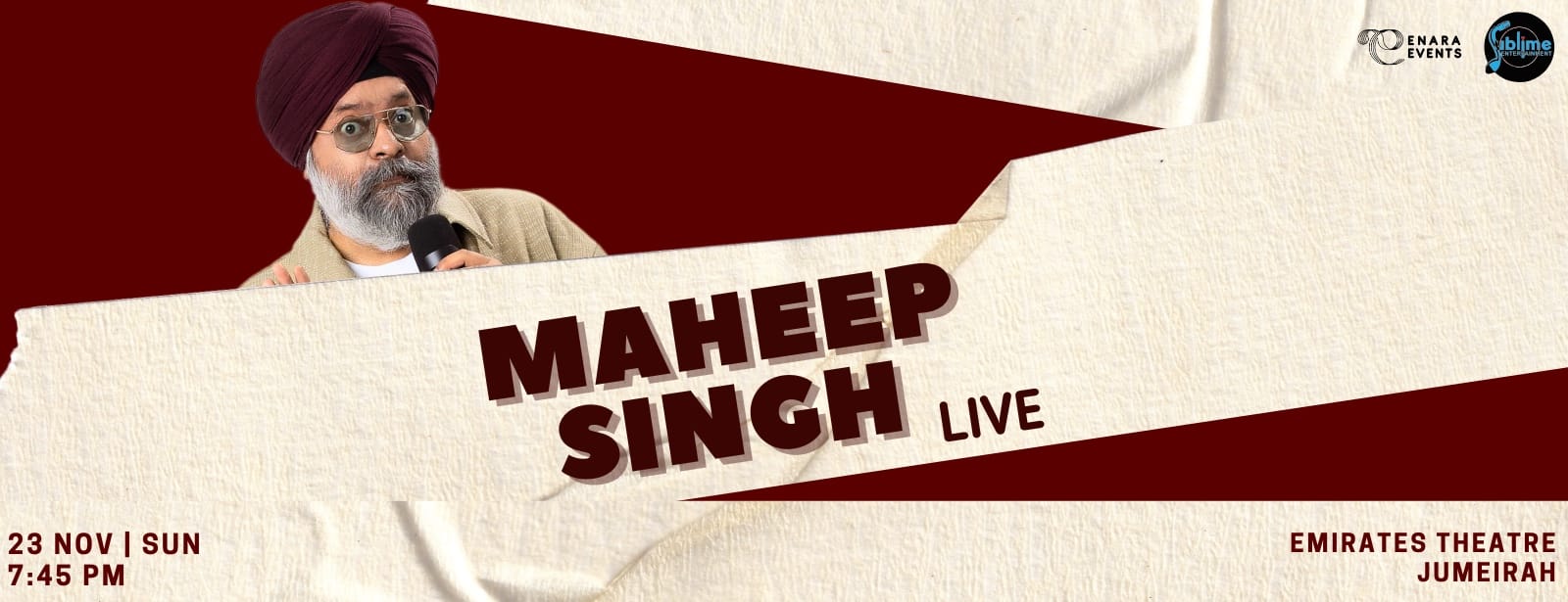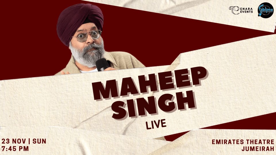 The event is brought to you by Sublime Entertainment & Enara Events. Maheep Singh Live in Dubai 2025 at Emirates International School, Jumeirah, Al Thanya St, Dubai, United Arab Emirates events Desi Events Emirates Theatre Maheep Singh