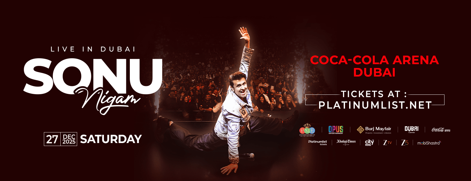 . . Mark your calendars for an unforgettable night of music as the iconicย Sonu Nigamย returns to the stage in Dubai for aย spectacular live concertย onย December 27, 2025, at the world-renownedย Coca-Cola Arena. ย Organized byย PME Entertainment and supported by Dubai Calendar, this highly anticipated event promises a magical evening filled with soulful melodies, timeless hits, and Sonu Nigamโs unmatched vocal brilliance that has captivated millions worldwide. ย Widely regarded as one of Indiaโs most versatile and beloved playback singers, Sonu Nigamโs electrifying stage presence and deep emotional connection with his fans have made his live concerts global phenomena.ย From Bollywood classics to contemporary chart-toppers, fans can expect an extraordinary musical journey spanning decades of his illustrious career.ย Sonu Nigam in Dubai at Coca-Cola Arena, Dubai, United Arab Emirates events Concerts Coca-Cola Arena Sonu Nigam