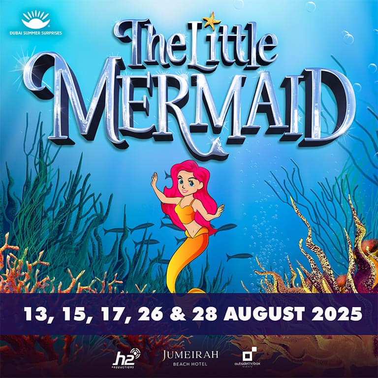 – THE LITTLE MERMAID – A SPLASH-TASTIC SUMMER SHOW! This summer,ย make wavesย with a spectacular new family show asย The Little Mermaidย splashes into theย Jumeirah Beach Hotel Theatreโin the heart of Dubaiโs iconic coastline! Joinย Ariella, the curious and courageous mermaid, as she dreams of lifeย above the wavesย and dares to leave the deep behind in search of true love. But danger lurks in the depths, as the wickedย Sea Witch Hysteriaย strikes a devilish bargainโAriellaโs voice in exchange for a chance at love with the dashing Prince Frederick. Will love conquer all? Or will Hysteria’s treacherous tentacles pull our heroine under?